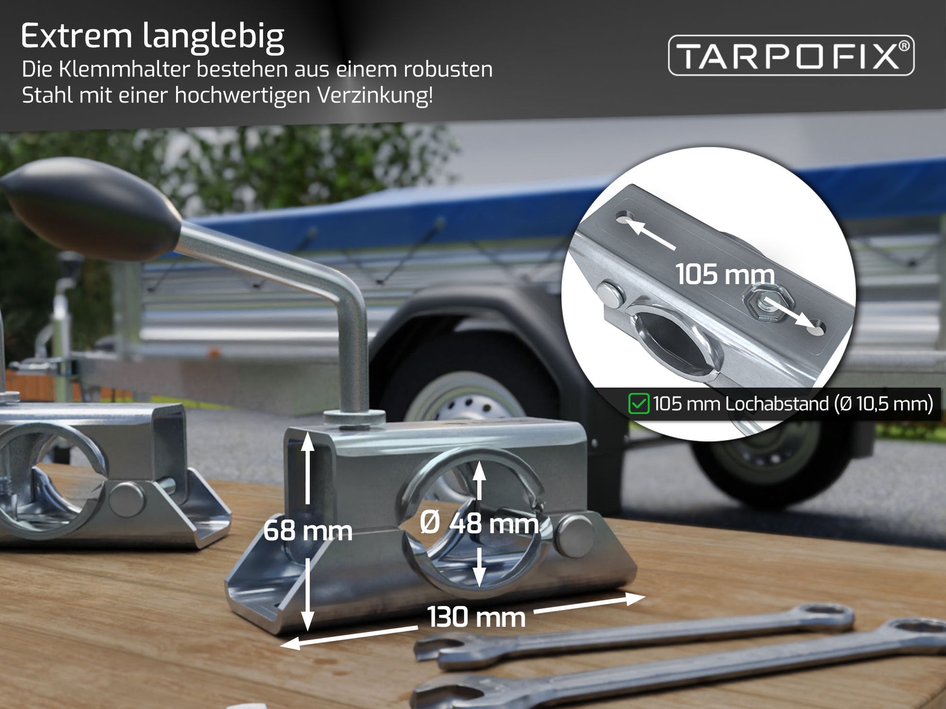 Der Klemmhalter eignet sich hervorragend für die sichere Befestigung von Rohrsystemen und anderen Konstruktionen. Ob bei Anhängern, Fahrzeugen oder in anderen Bereichen – er bietet Stabilität und Zuverlässigkeit in jeder Situation.