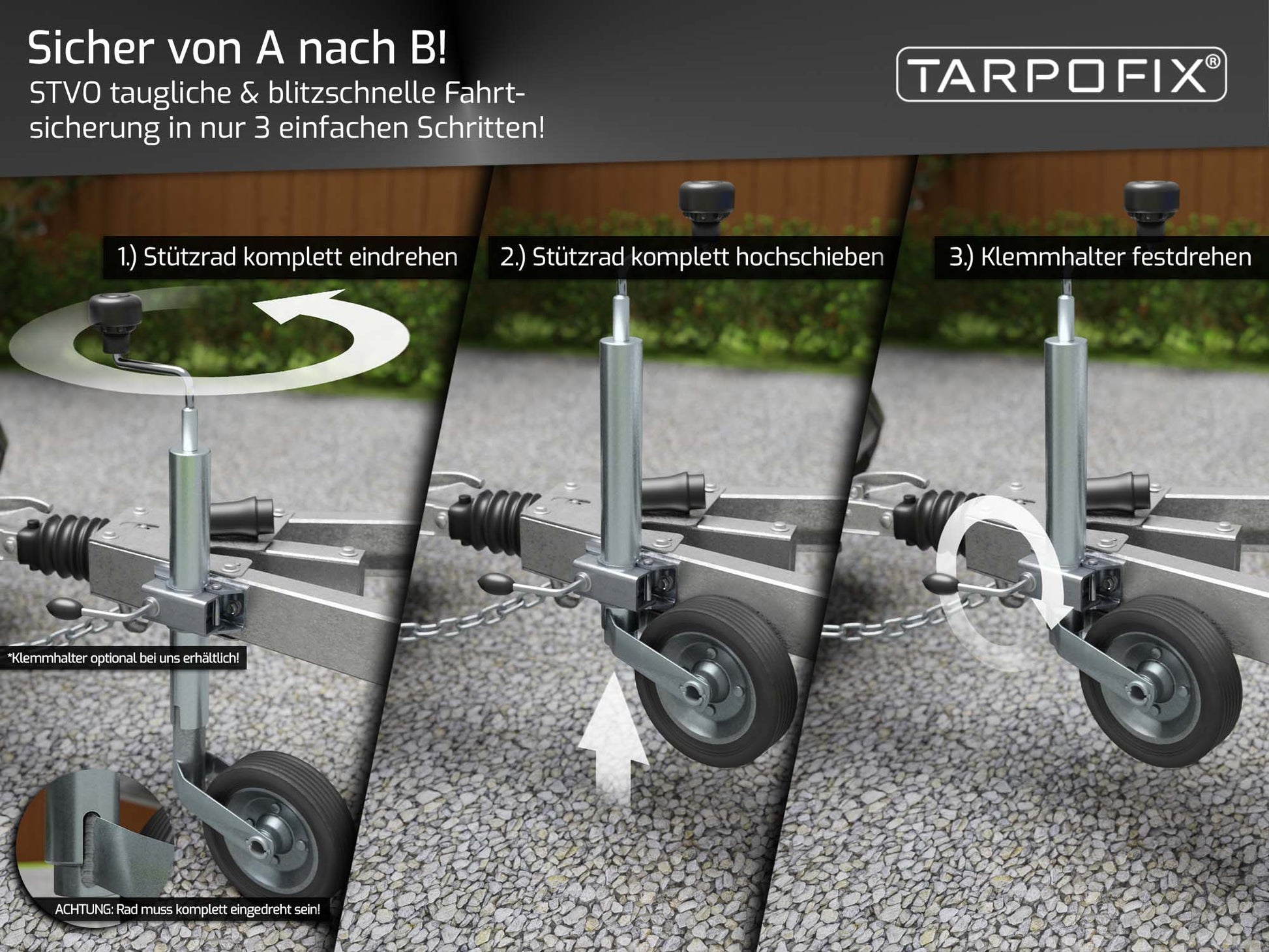 Dieses Stützrad eignet sich hervorragend für unterschiedliche Anhängermodelle und ist die ideale Lösung, um den Anhänger sicher und standfest abzustellen. Es erleichtert das Rangieren und bietet eine zuverlässige Unterstützung in jeder Situation.