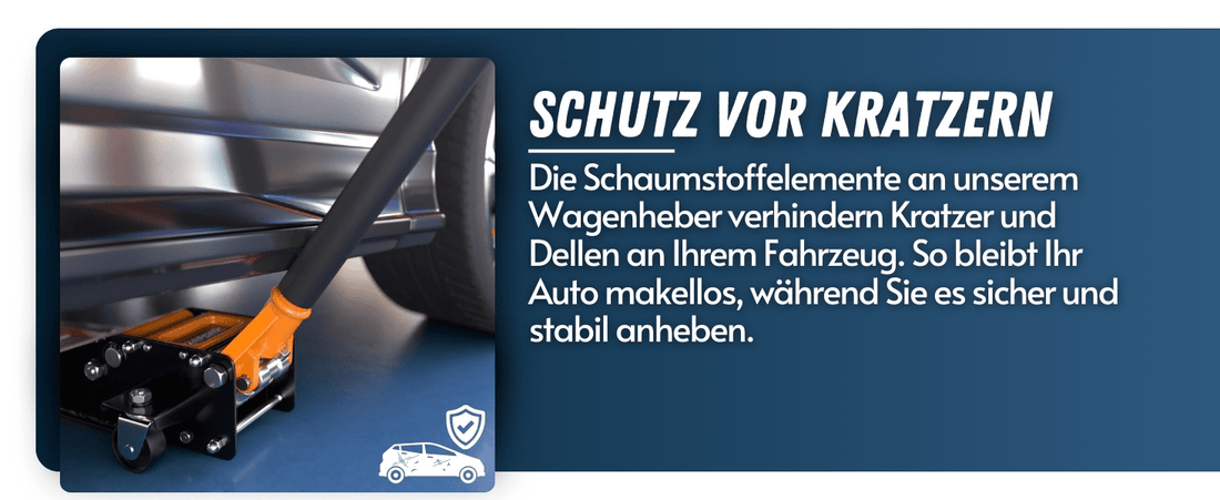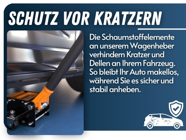 Mit einer maximalen Tragkraft von 3 Tonnen eignet sich dieser Wagenheber für eine Vielzahl von Fahrzeugtypen, einschließlich tiefergelegter Autos. Die Doppelhydraulikzylinder erleichtern das Anheben und Senken, während die 360° Rollräder eine präzise Positionierung unter dem Fahrzeug ermöglichen. Die rutschfeste Gummiauflage und die Schaumstoffabdeckung schützen dein Fahrzeug vor Kratzern und Dellen.