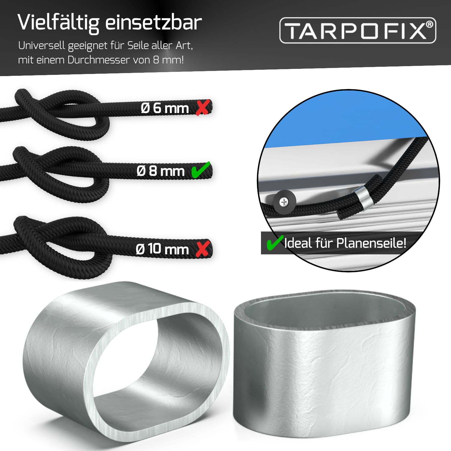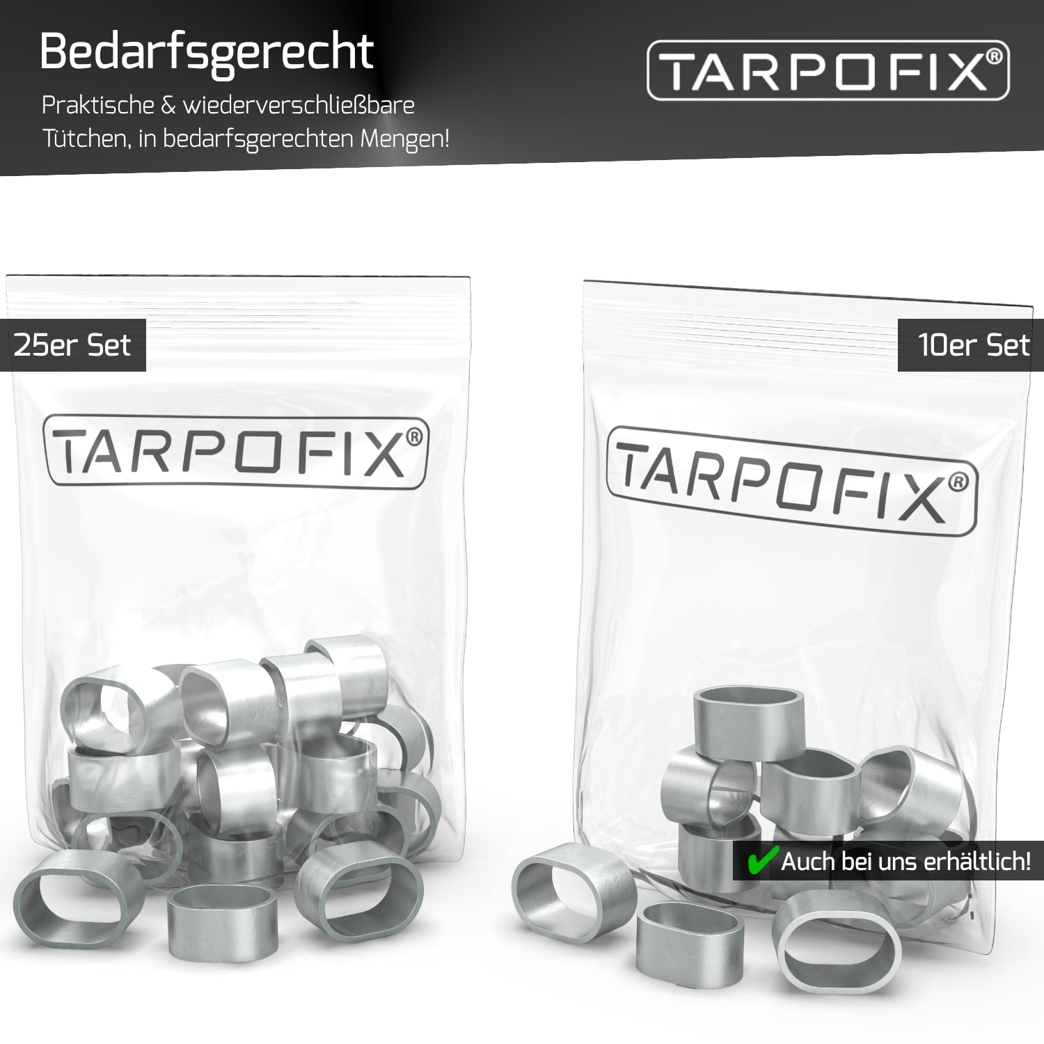 Tipp: Wir empfehlen Ihnen, bei der Befestigung der Tarpofix® Würgeklemmen für die Verpressung vorzugsweise eine Kneifzange o.ä. zu verwenden. Sofern Sie keine Zange zur Hand haben sollten, kann alternativ auch ein Hammer genutzt werden.